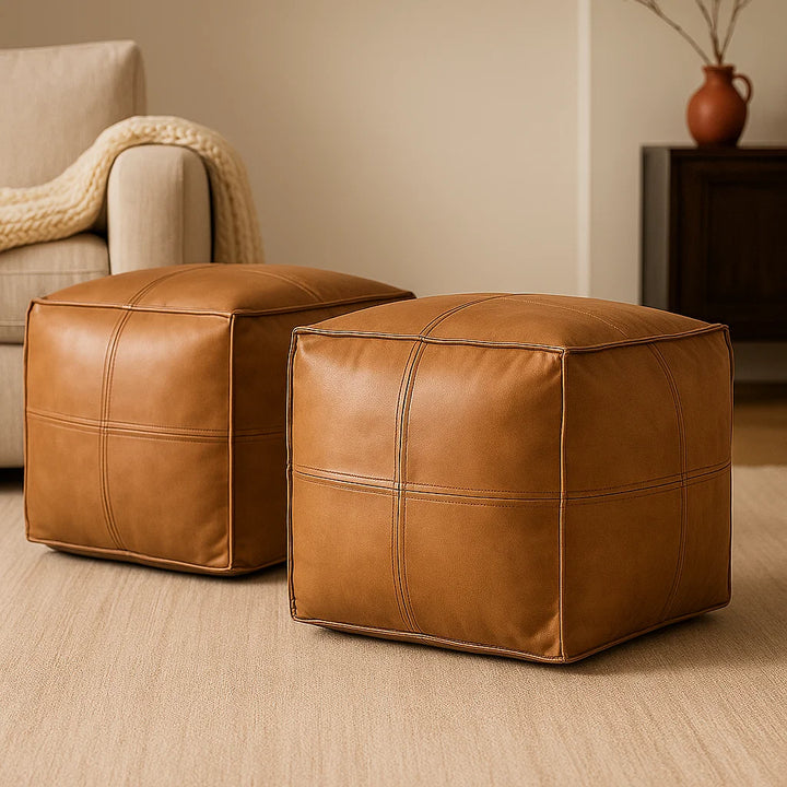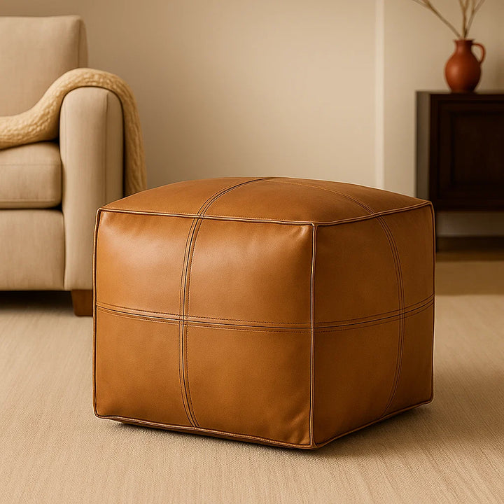 A Very nice pouf, authentic and well made, our Square leather pouf are made out of the best quality leather premium quality by highly qualified Craftsmen in small workshops with a traditional skill.