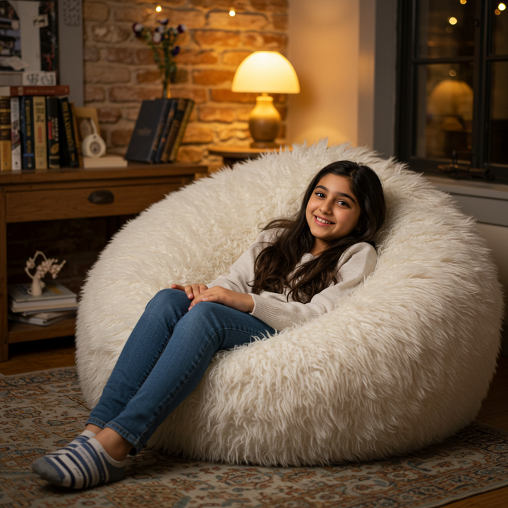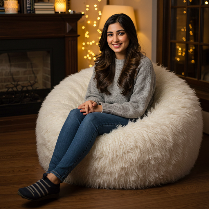 - Deluxe White Shaggy Faux Fur Tick Bag.