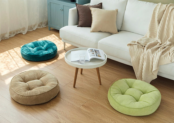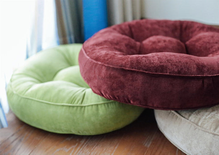 Modern Minimalist Round Foam Yoga Cushion | Minimalist Seating Cushion. Lower profile floor cushion suitable for people who are not super flexible or have knee issues
