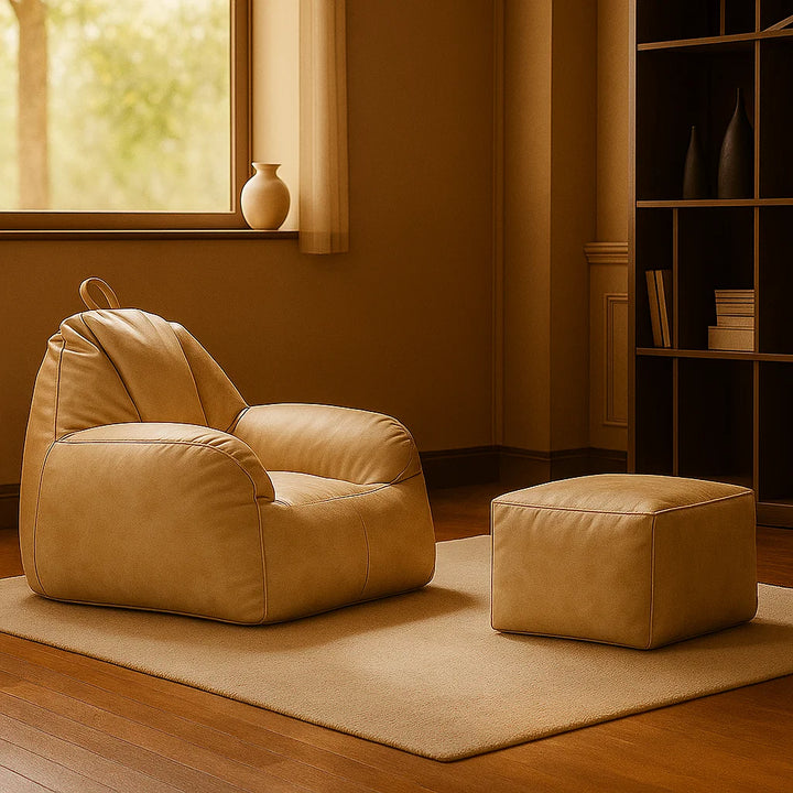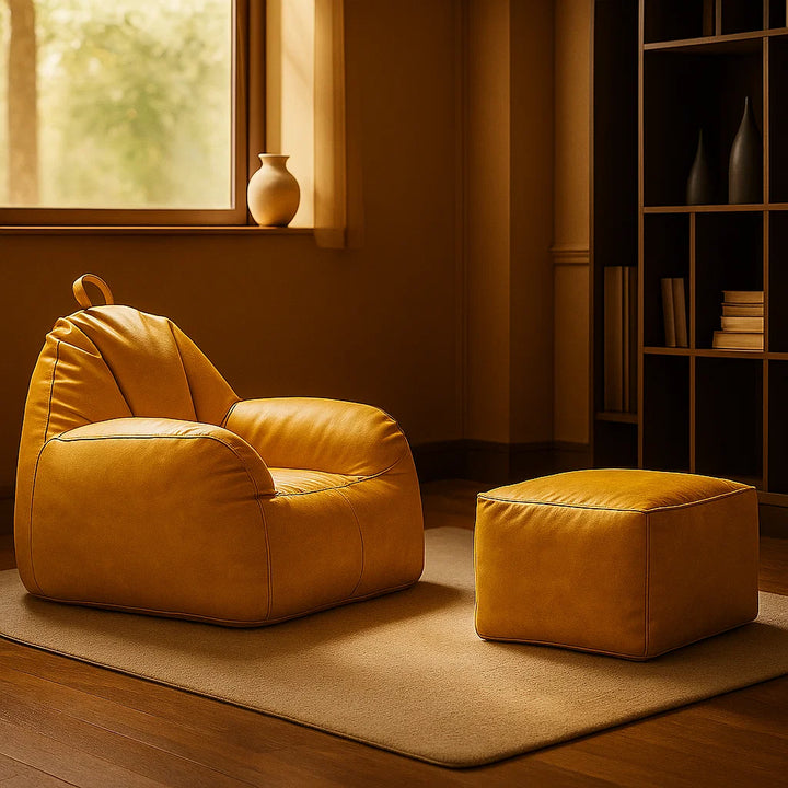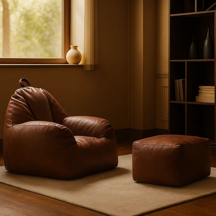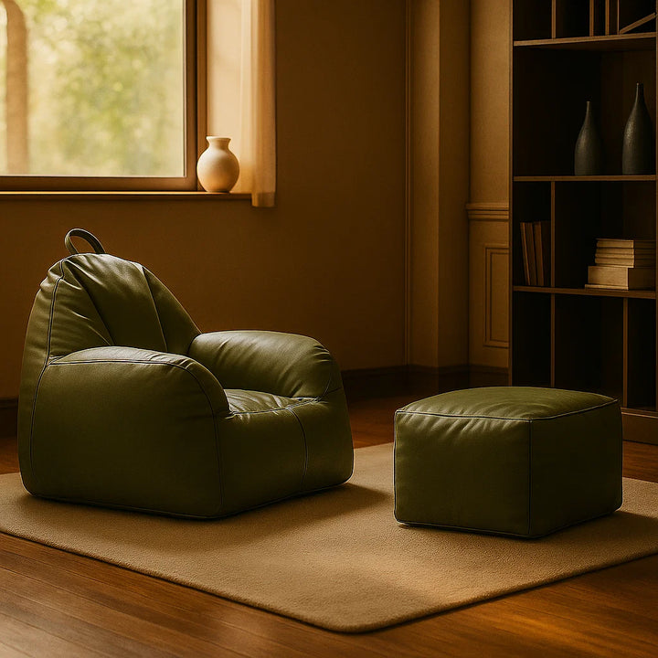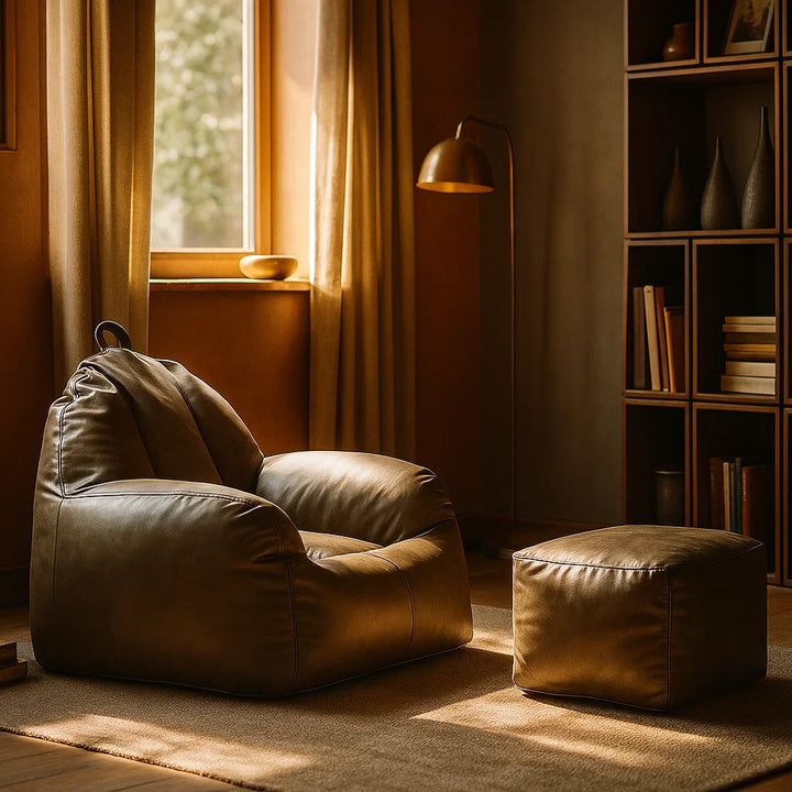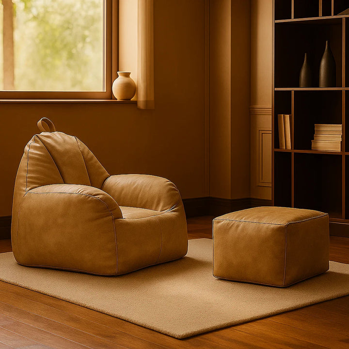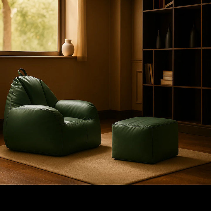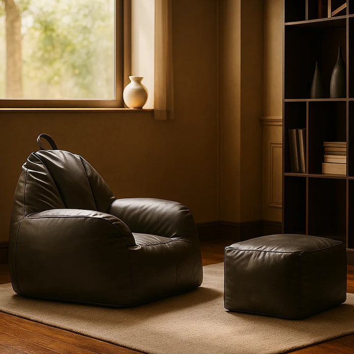 Introducing the PlushPod Bean Bag Sofa with Footrest in Leatherette – where modern comfort meets sleek sophistication.