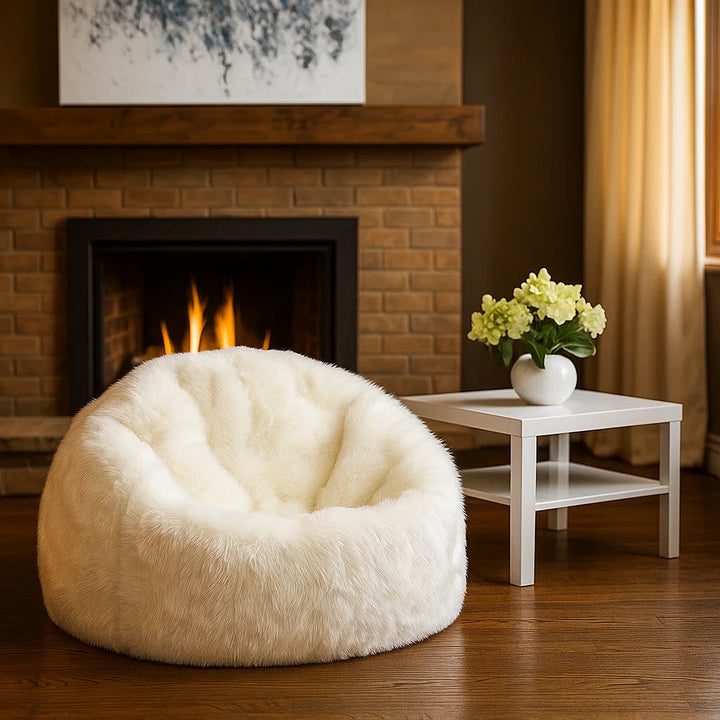 - SNUGGLE INTO LUXURY; Prepare to fall in love with this sumptuous, rounded faux fur bean bag.